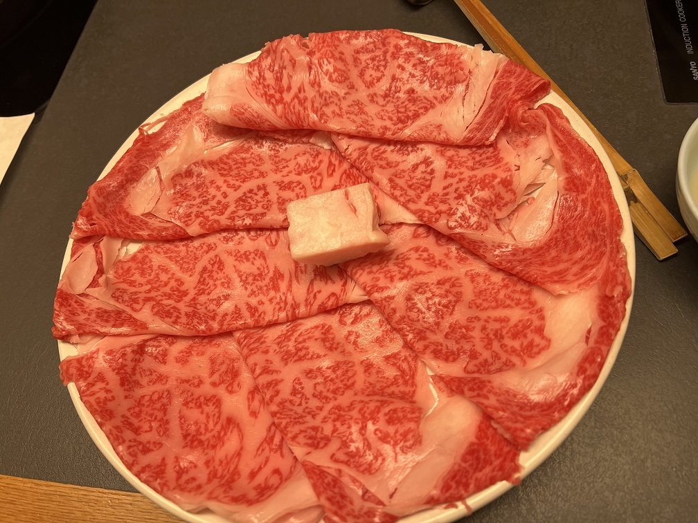 150gだとしゃぶしゃぶなら普通の量ですが、お高い店だと料理を一品ずつ持ってくるので結構お腹いっぱいになります。