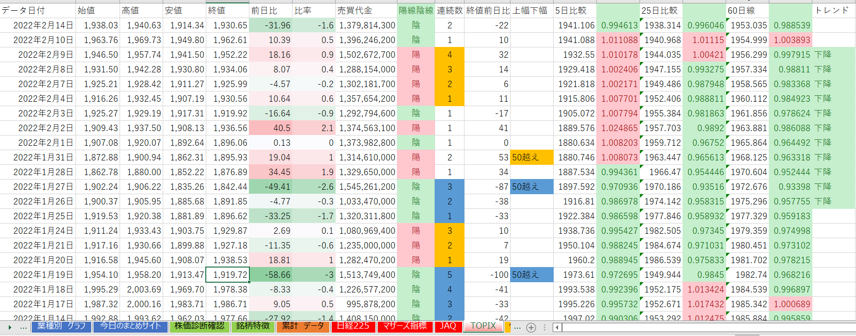 業種トレンドだけ見れば、上昇トレンドが多い展開です。