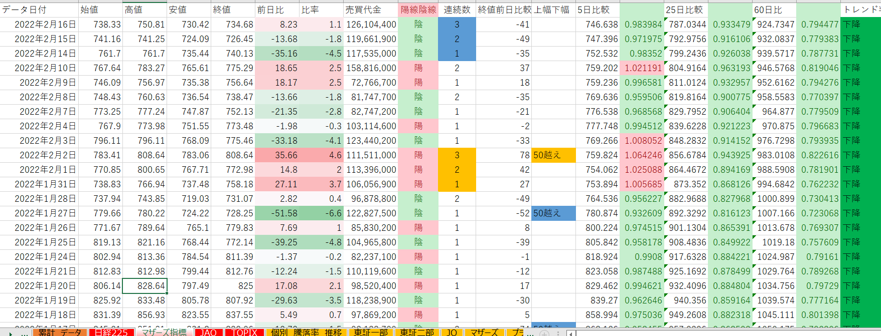 ちょっと前まで、上昇トレンド業種は0、下降トレンド業種が20を