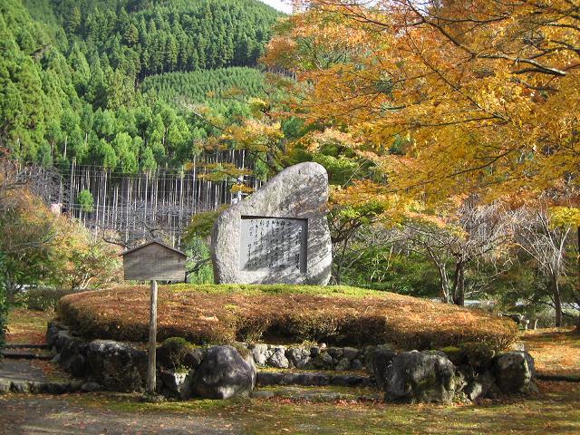 3.川端康成の文学碑&左奥が北山杉