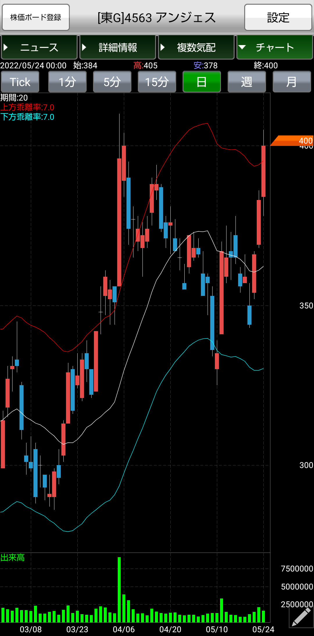 約定条件 ☛ エンベロープの上線接地銘柄
