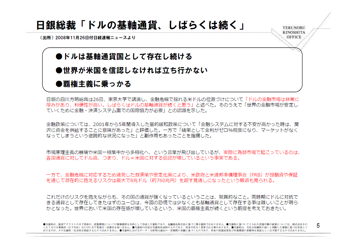 今回の恐慌では少なくとも基軸通貨として存在する事は
