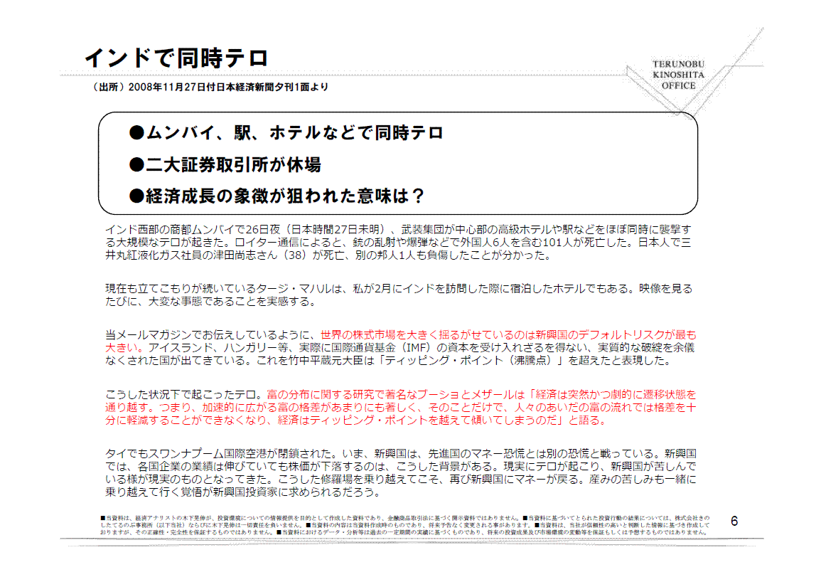現実にテロが起こり、新興国が苦しんでいる様が現実のものとなってきた。
