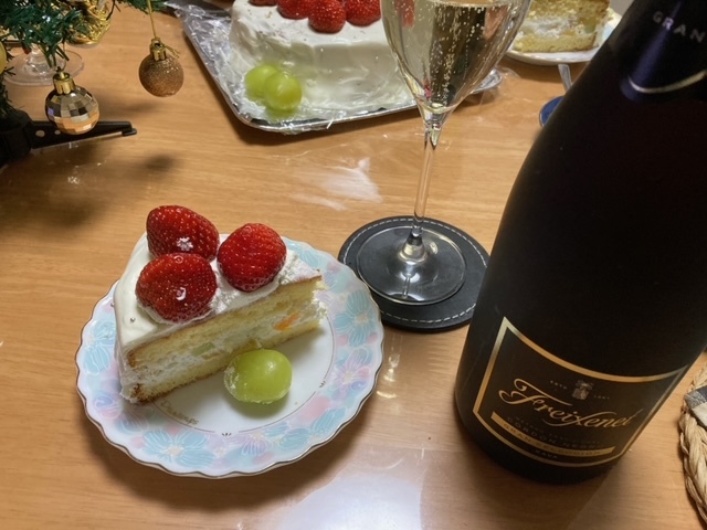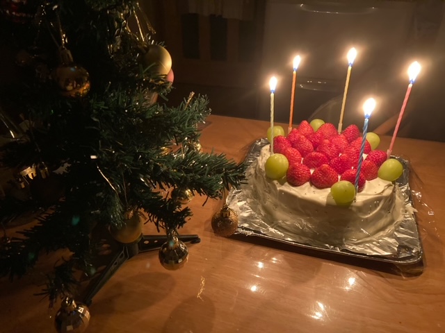 例年と一緒ですが、びび嫁作のケーキと共に。