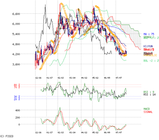 本銘柄はチャートの形ではない。信用倍率0.42を基にした。さてどうなるか?