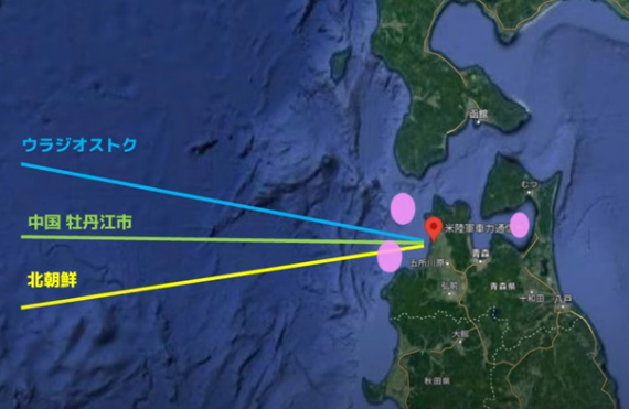 なんでも腸凶力な4000㌔も監視できる、虫獄・キタ腸栓に向けたレーダーの真ん前に風車を建てるから(写真ピンク色の部分)、国も米軍も文句を言う成っていう立法?を通したらしい┗(・o・)┛ワオー!!