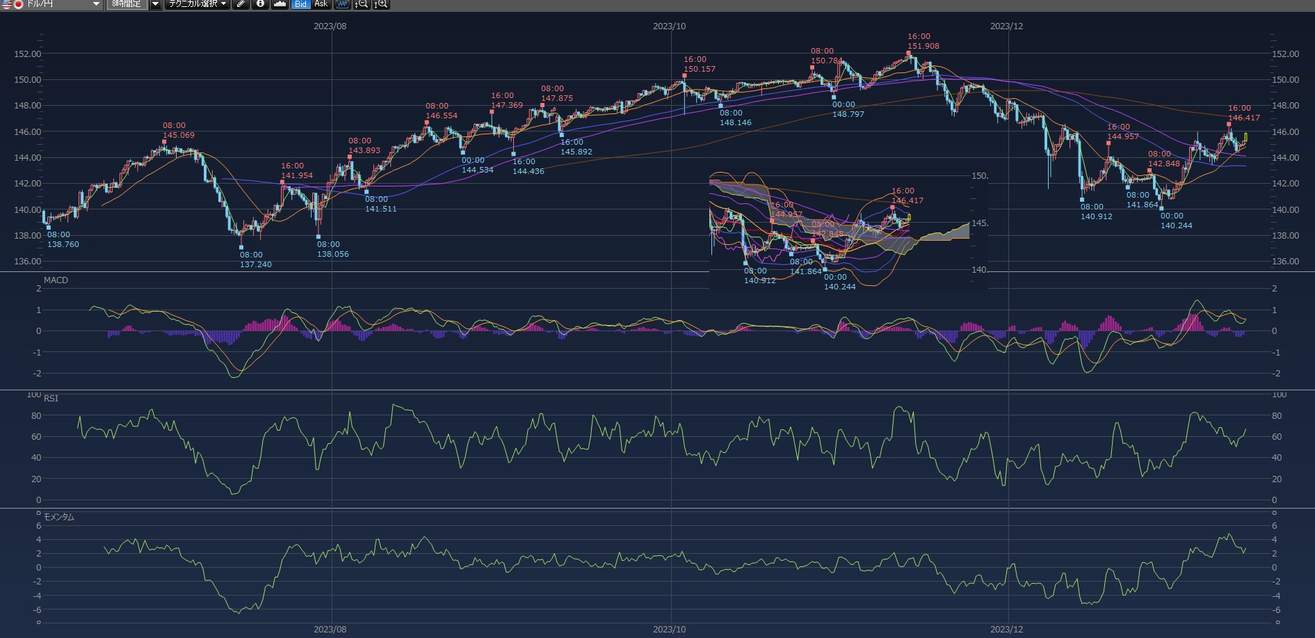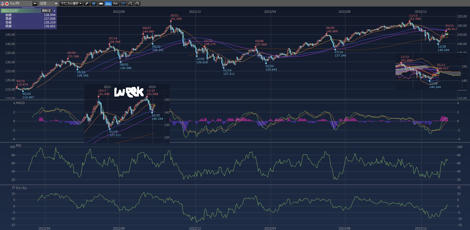 146円行きそうで行かないのね