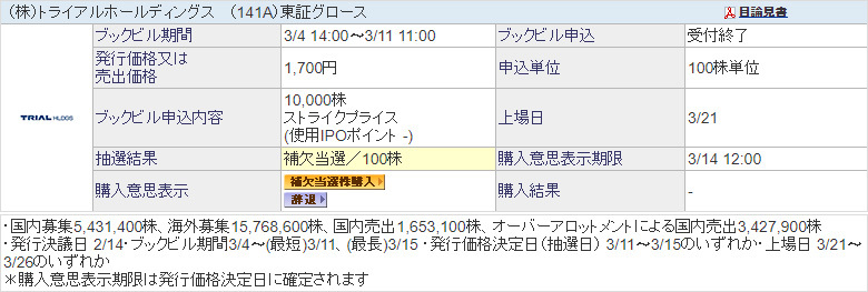 【IPO】トライアルホールディングス 当選