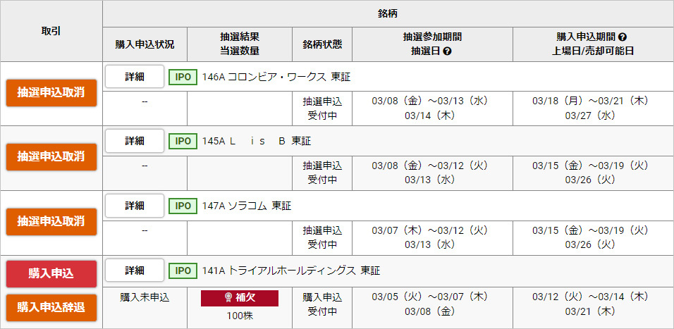 他のIPOも申し込んでいるため、補欠申込み500株に資金を回すのを躊躇してます。