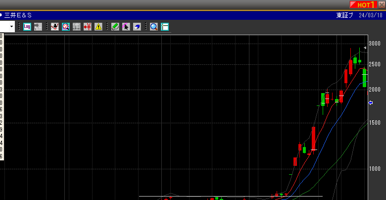 [3/8引け]場中は本業であまり見れず、引け間際に見たら、高値更新はしているが、大きく下げて上髭陰線で終わりそうだった。