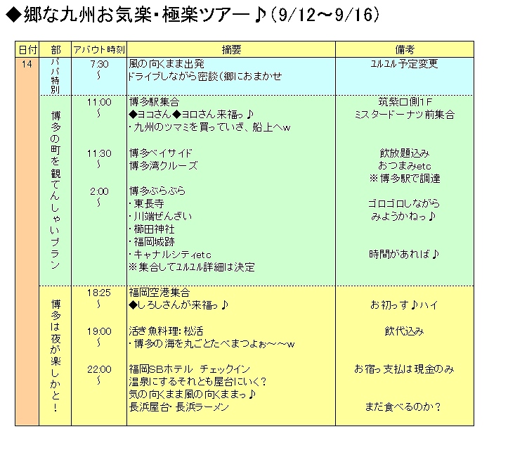 日程表は参加者にメール配布しまつ♪その前に仕事をヤッツケマッスル・・・・あたたたたたっ♪
