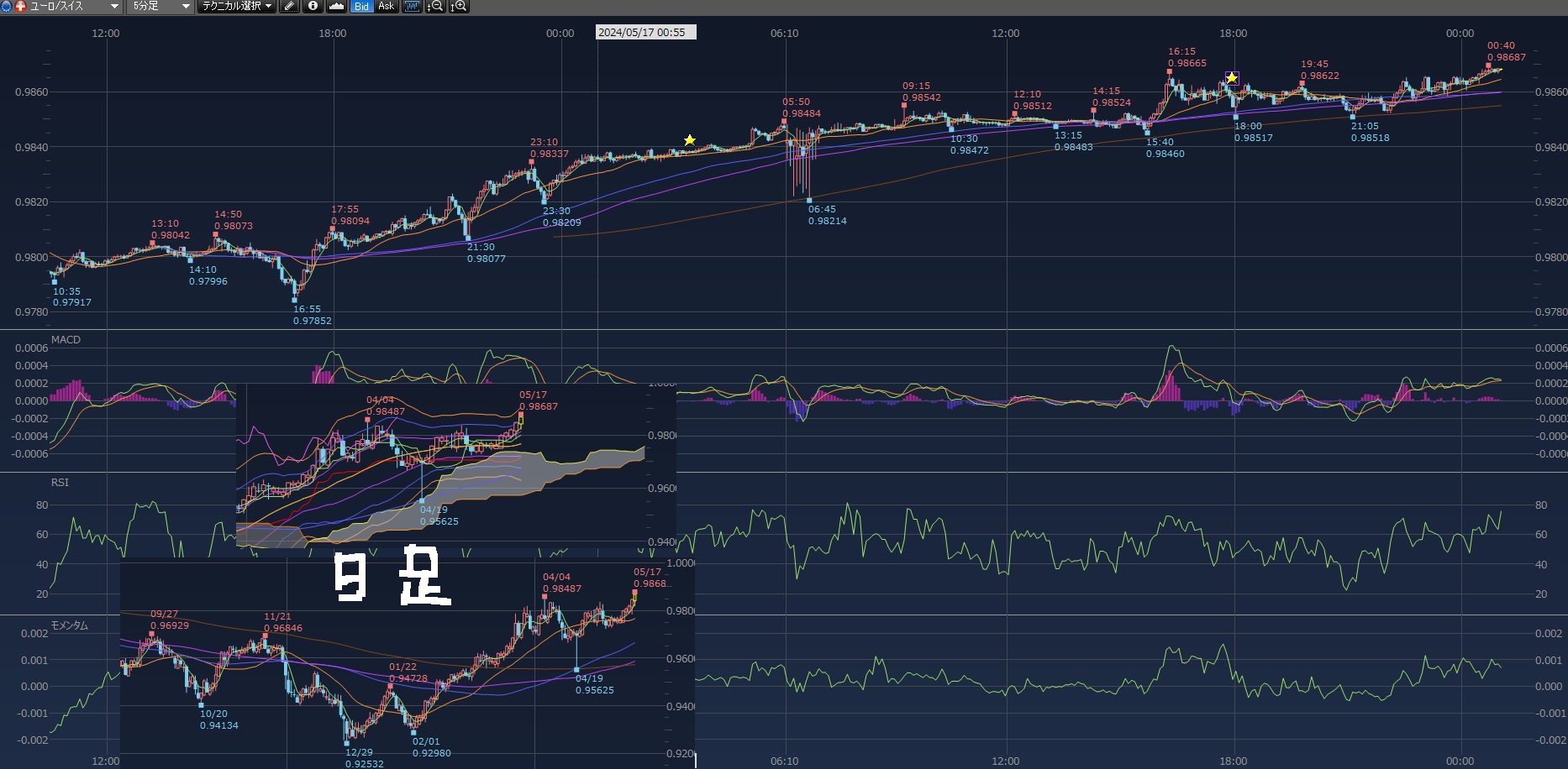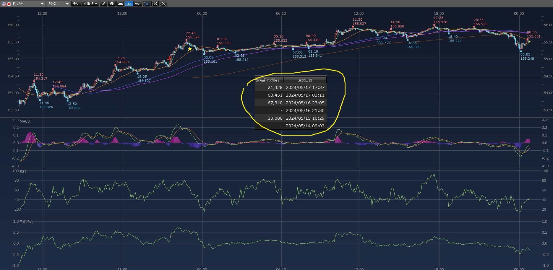 あとはスワップポイントで翌日にポジションを持ち越したら、金利をもらえたり払うことになったりします。