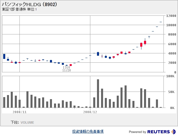 てか、もう既に1ヶ月半で底値から8倍になってんだけどね・・・。