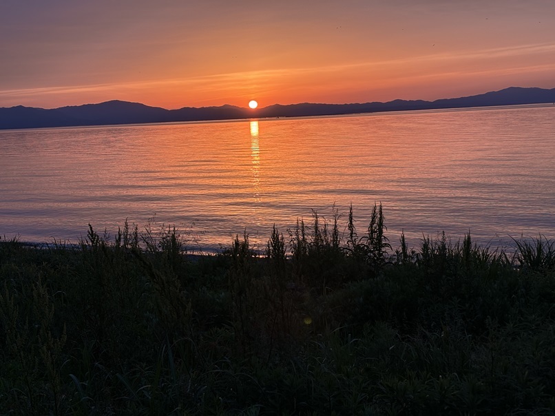 前日に行って、琵琶湖の夕日を楽しむ。