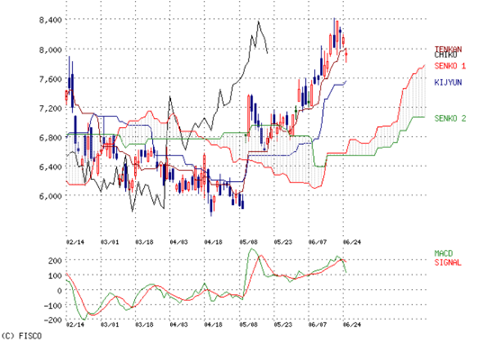 今日で転換線の上に株価が戻って。