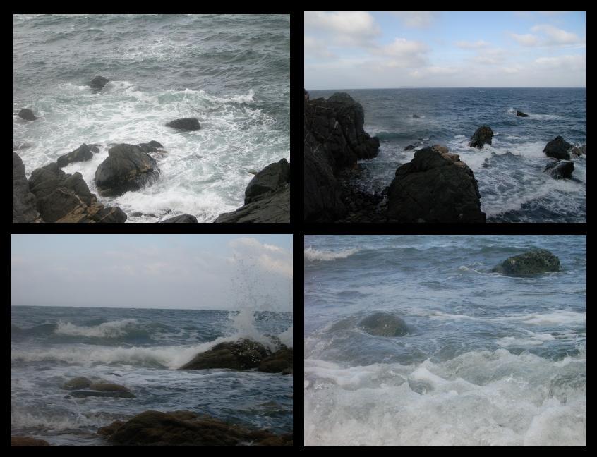 潮が満ちてきて、ドンドン荒れる海と風♪冷たい波が郷の温泉に入ってきだして、クールダウン♪逃げなければ死ぬじゃ♪けらけらけら