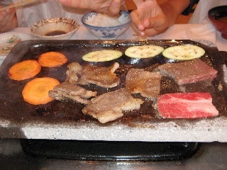 お肉は、阿蘇の赤牛を求めて産山民宿「山の里」に行き昼食と自家製のお肉を調達。