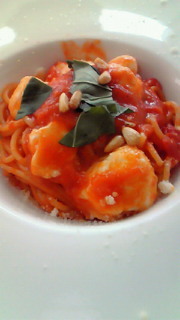 >このパスタ、好きかも。トマトベースって、最近好んで食べています。