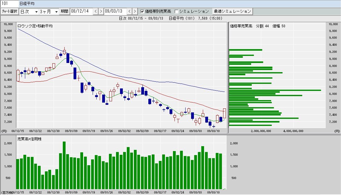 日経平均株価 7,569.28 +371.03 +5.15%