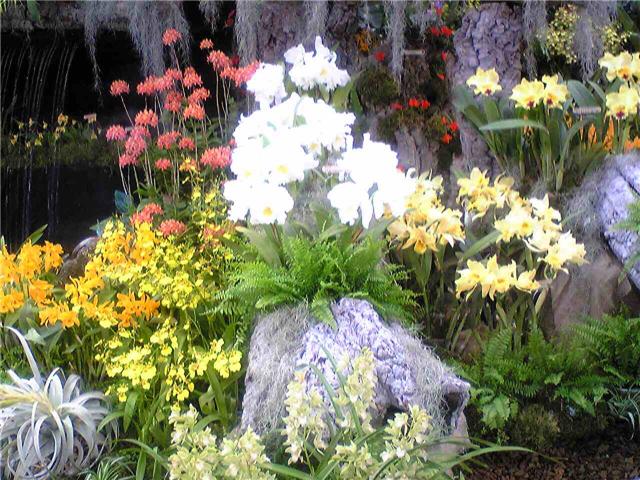 エピデンドラムの綺麗な豪華な花と豪華な展示です。これだけ綺麗に咲かせるのは相当大変です。気合が入ります。