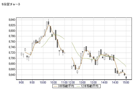 引けにかけて株価は下がり、結局安値引けとなってしまいました。