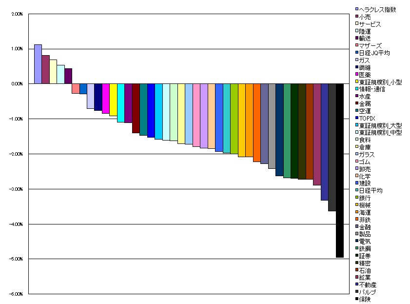 34.鉄鋼 -2.69%(-2.66%)