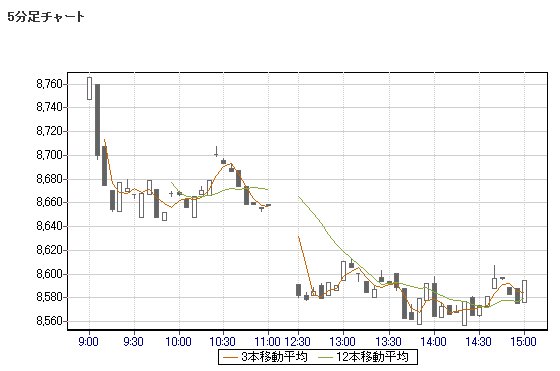 5日移動平均線 8,750↑