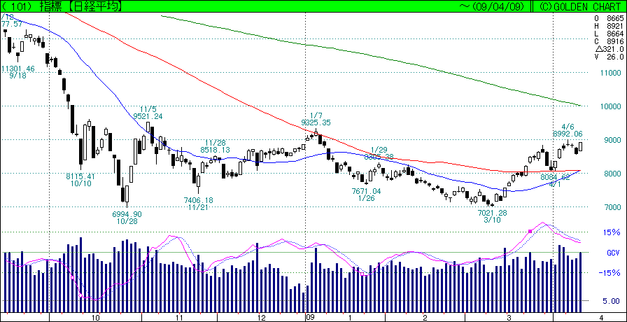 結局金曜も終値ベースでは壁に阻まれたようでござるが、週明けいよいよ¥9,000越えへの新たな挑戦でござりましょう。来週は決算発表もまだ本格化ではなく、大きな節目とはならないような気もしてまする。