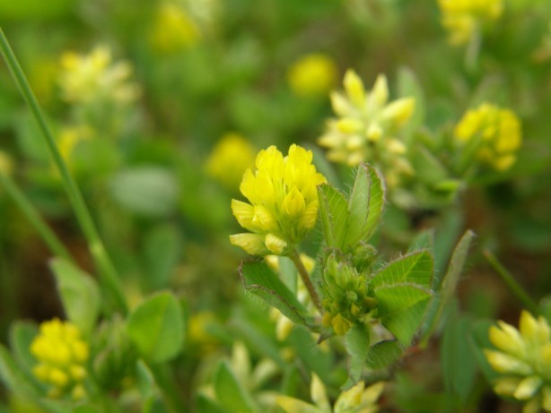 左がコメツブヘビイチゴ(まめ科)、右がオヘビイチゴ(ばら科)
