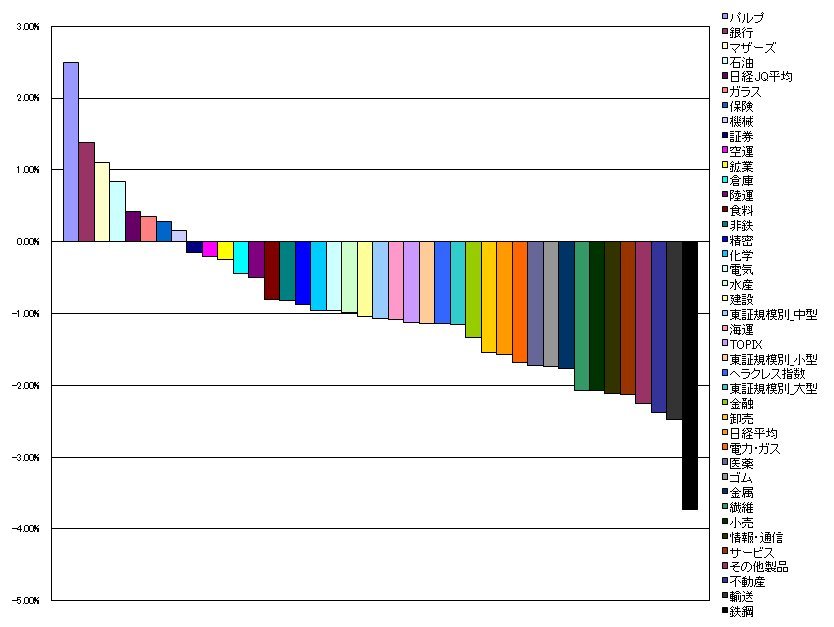 41.鉄鋼 -3.73%(-0.13%)