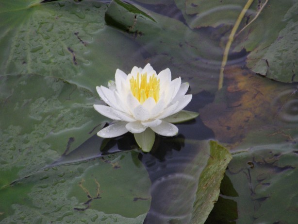 産毛があって水をはじいているんでしょうね。雨のスイレンもおつなものですね。