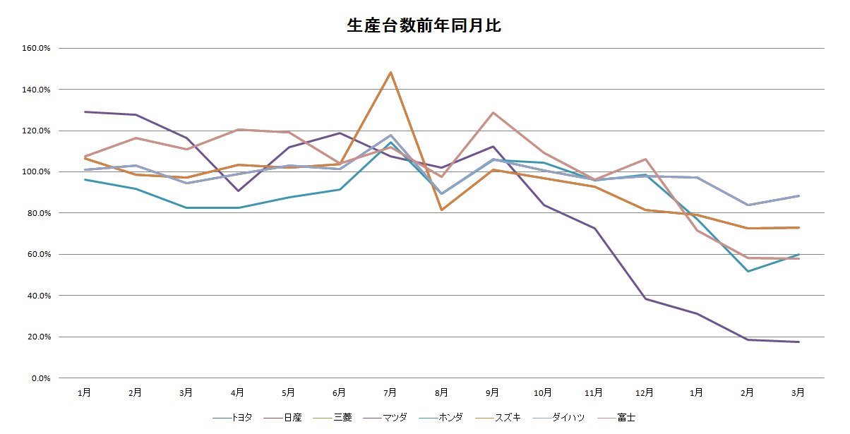 生産実績・輸出実績は軽を含む乗用車