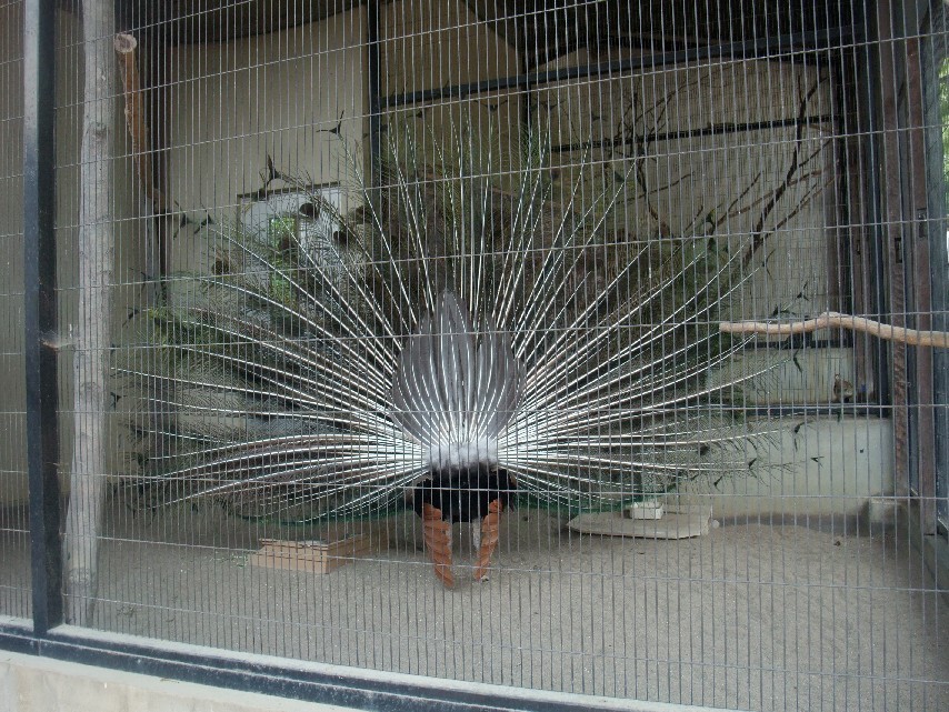 ちょうど孔雀が羽を広げていたので、お、ラッキーと思っていたら、滅多に?見ることが無い、広げたときの裏側も見せてくれました。裏も立派なもんだと思いませんか?