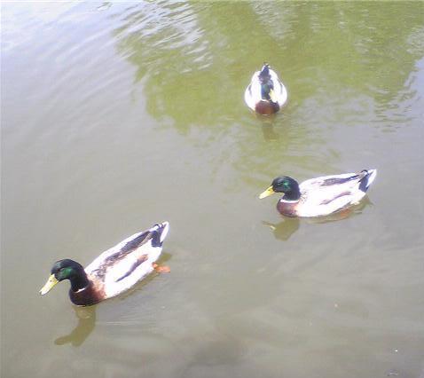 アイガモかマガモかよくわからないが普通にいるのでマガモでしょう。もう近くで花しょうぶも咲いています。とり , アイガモ , かも: