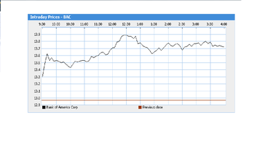 それでも2時半過ぎから多少上昇基調に転じたのは、長期金利反落による買い安心感から、バンクオブアメリカなどの金融株が上昇したためと解説されています。そのバンクオフアメリカの株価は確かに堅調な推移でした。