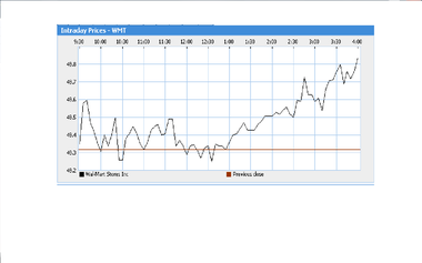 しかし私は、6月のミシガン大学消費者信頼感指数が事前予想を下回ったにも関わらず、前月に比べて前月に比べて上昇したことに注目しています。ここに示したウォールマートの日中足のほうが、ダウの動きをより的確に説明していると見ています。