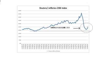 国際商品市況の回復が新聞紙上を賑わしています。ここでもう一度国際商品市況と株価との連動性を見ておきたいと思います。