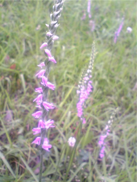 素直なネジバナがあり、チョクバナとでも名前を付けたくなります。こんな素直なネジバナもあるのです。集団で直立していました。