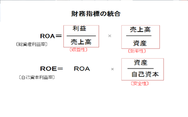 それに「財務レバレッジ」、つまり安全性の指標である自己資本比率の逆数を掛け合わせたものがROEなのです。