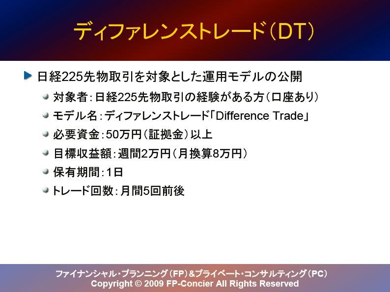 日経225先物向けの運用モデルである「ディファレンストレード(DT)」を完全公開します。枚数の関係上、2度に分けて投稿します。