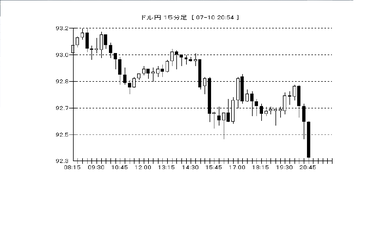 対ドル円レートのチャートを見ると、午後9時前から、急速に円高に動き始めています。GLOBEXの下げ幅拡大と並行しており、今日は厳しい警戒態勢の一日となりそうです。