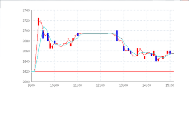 開始早々に71円高をつけたのですが、その後は上下を繰り返す展開で、2時過ぎには一時11円安まで下落する局面もあり、結局7.44円、0.08%の小幅高での大引けとなりました。