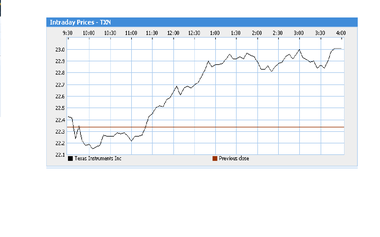 ハイテク株の強さの背景には、すでに決算発表を済ませているインテルやIBMに対して市場が好意的に評価している流れがあるようです。TI(テキサス・インストルメンツ)のザラバでの堅調な動きが印象的でした。