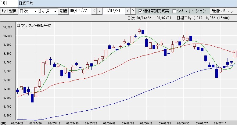 75日移動平均線 9,338↑