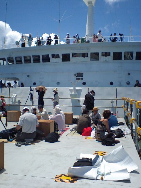 小笠原丸にも多数の報道関係者が乗っていました。