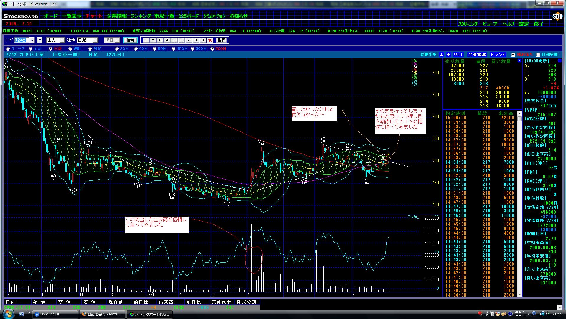 我慢して押し目があったら買ってみよ~。ということで212指値放置で出勤。