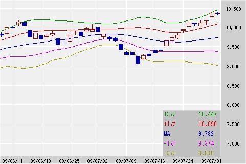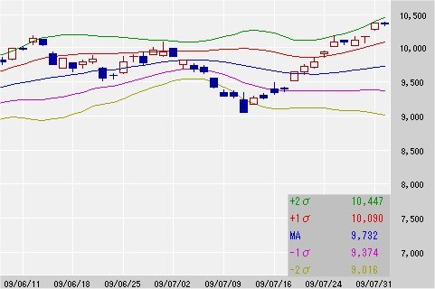 25日移動平均線 9,732↑