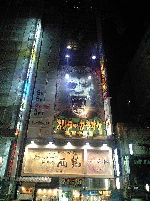 スリラーカラオケ、見るからに怪しいお店です♪