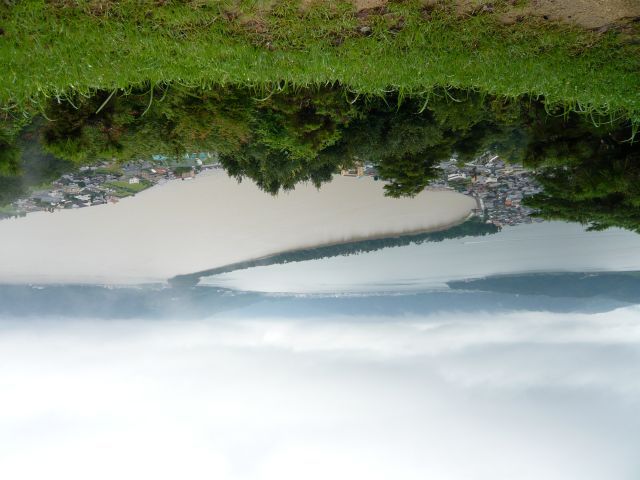 はい、意図的です(笑)天橋立は『股のぞき』っと行って体前屈上体で股の間から見ると天に橋が掛かっている様に見える…って言うのが正しい見方なので(笑)実際にそうやって撮影すると上下が逆になるんです(^^)
