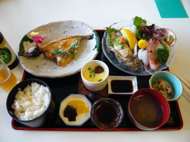 あらかじめ岩ガキの旬であると言う事は調べてあったのですが、前日のヨロさんからの情報でトリ貝も名物であると聞いていましたので写真右の『岩ガキ、トリ貝御膳』を注文(^^)